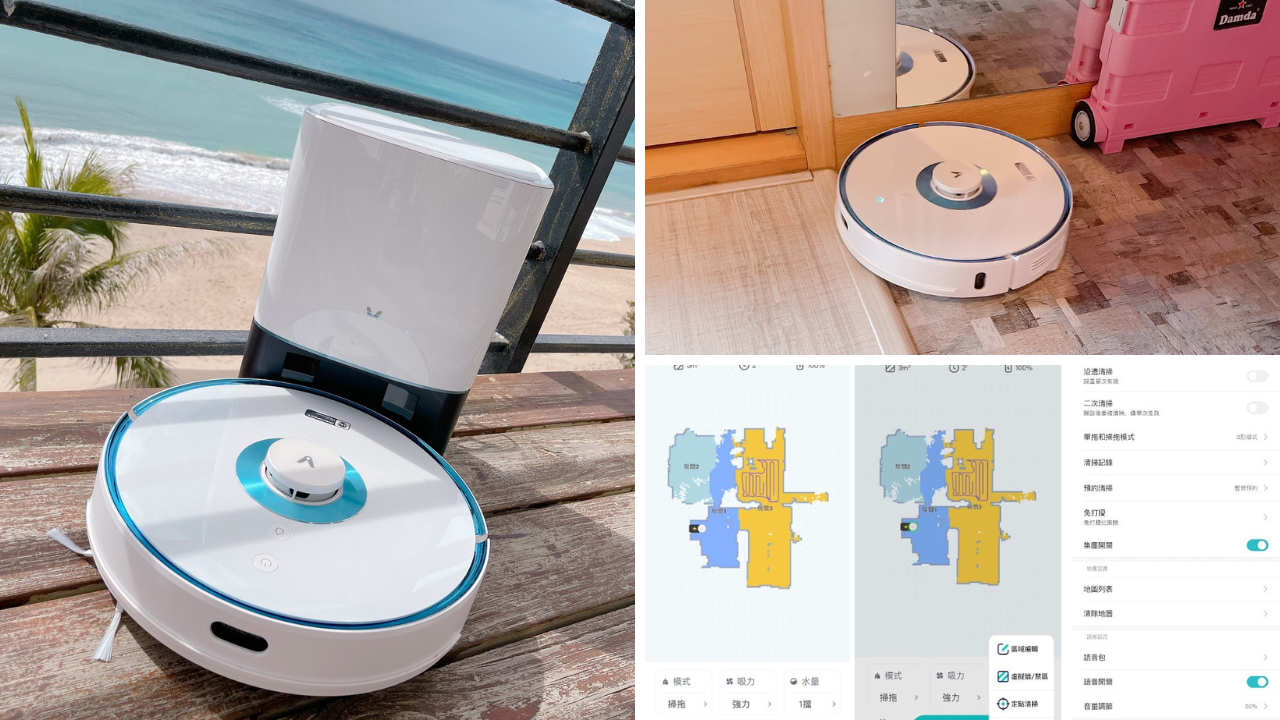 說說當初吸引我的地方吧:除了顏值高之外,它的 app 功能齊全。重點是!!!他是一台"自動集塵掃拖機器人"可以掃加拖,並且有一個集塵堡,可以收集每次打掃的灰塵聲音絕對比你家抽油煙機和某些吸塵器小聲,如果還是非常在意噪音的話,也可以趁人不在家時透過 app 遠端操控還能預約清掃!回到家就可以享受整潔的環境