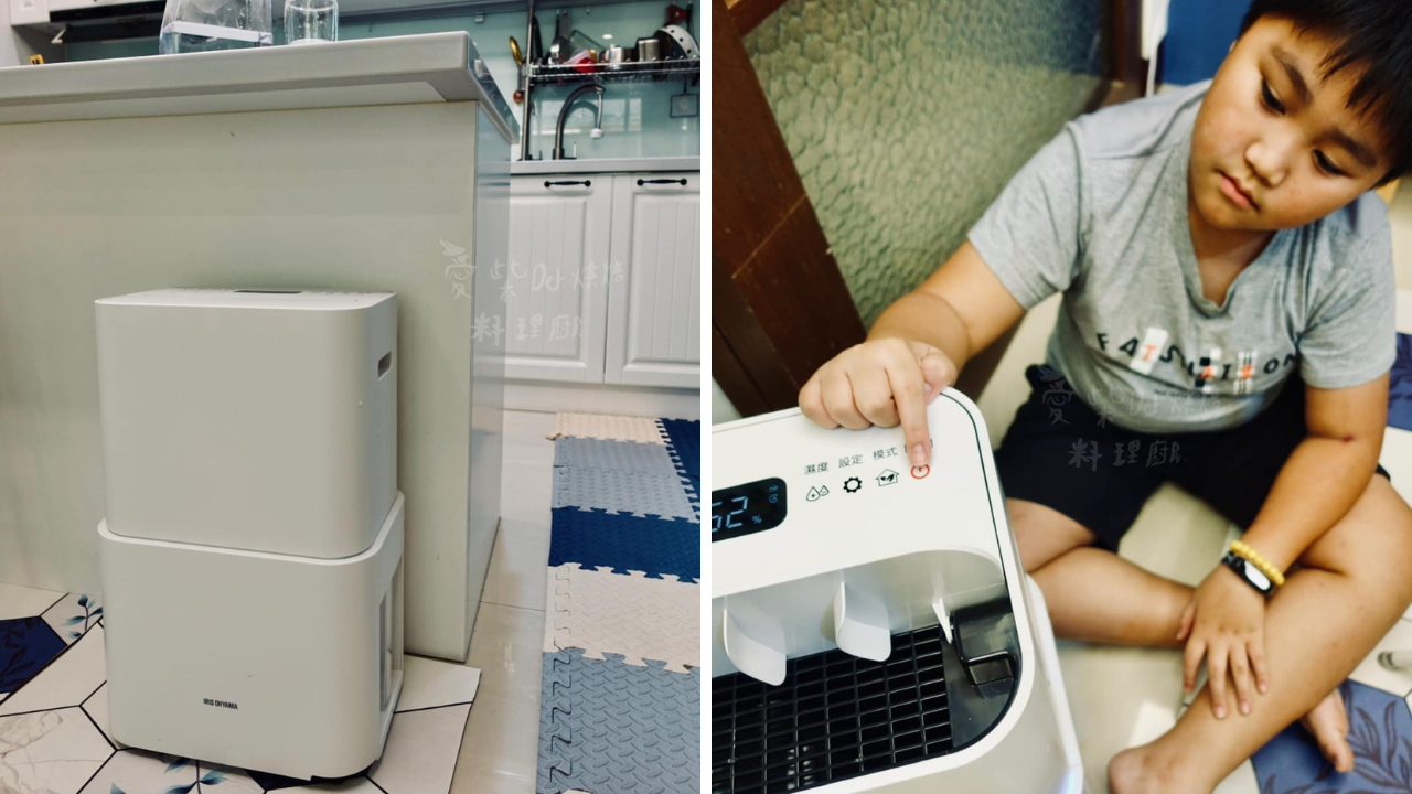 日本 IrisOHYAMA 空氣清淨除濕機 ,這台真的是吃水怪獸,這幾天都能幫我除掉 3 桶 2,900 公升的水。千萬不要小看台灣的潮濕氣候,無論晴雨,濕氣都很重,容易孳生黴菌,也容易誘發過敏性鼻炎、氣喘、異位性皮膚炎等過敏問題。