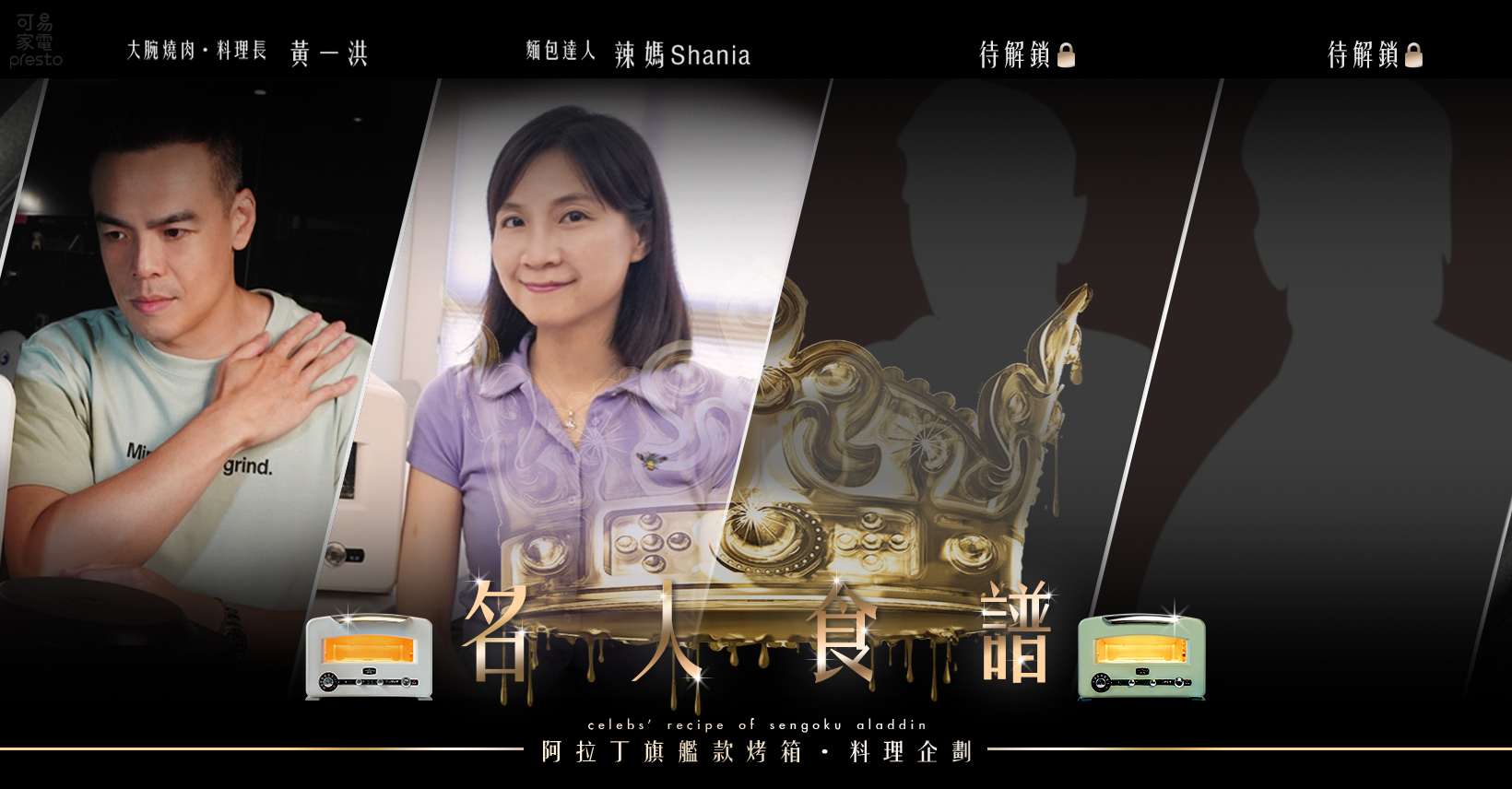 榮幸邀請到料理界各大名人使用【阿拉丁0.2秒瞬熱320度旗艦烤箱】,針對各種智能模式分享阿拉丁烤箱食譜料理,透過明星主廚們製作料理的過程及真實體驗心得,讓大家對阿拉丁烤箱有更深入的了解,也可以跟著大廚推薦的阿拉丁烤箱食譜,一起使用各種智能模式做出美味料理!