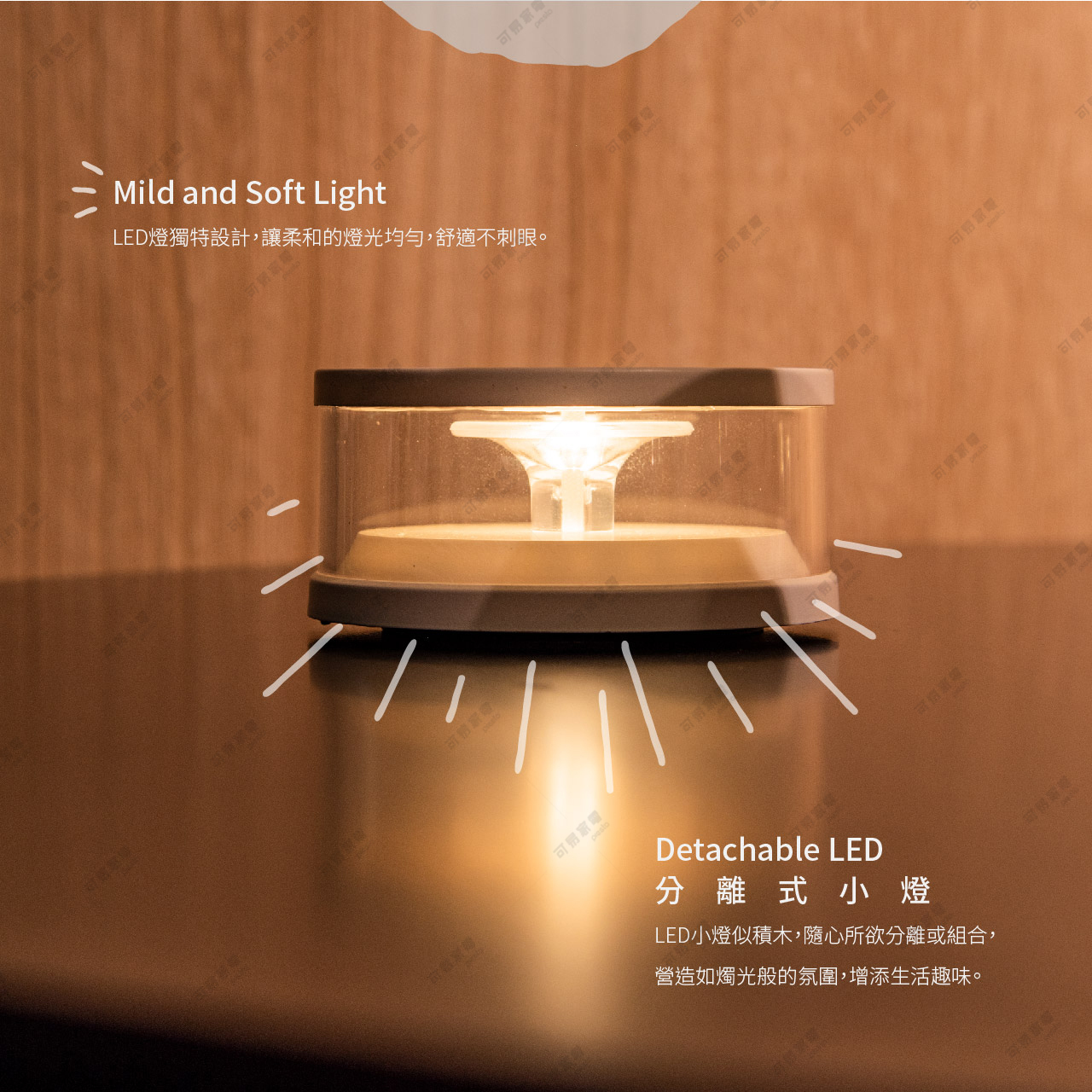 LED小燈似積木,隨心所欲分離或組合,營造如燭光般的氛圍,增添生活趣味。