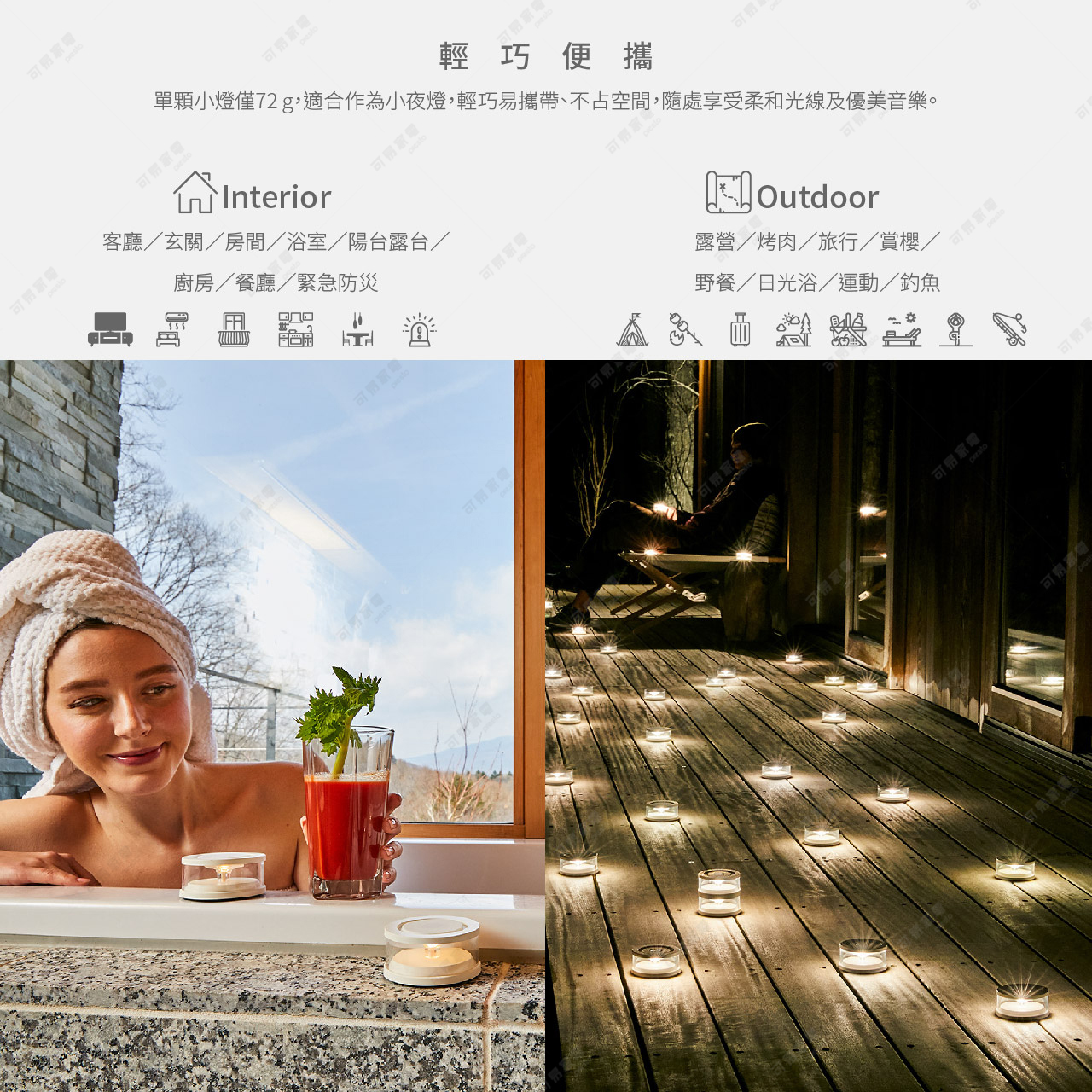 單顆小燈僅72 g,適合作為小夜燈,輕巧易攜帶、不占空間,隨處享受柔和光線及優美音樂。