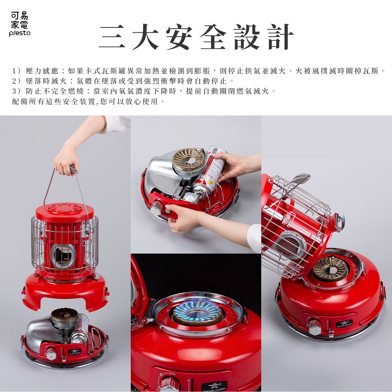 阿拉丁卡式瓦斯暖爐擁有非常活潑、新穎、亮麗的色彩,除了有著傳統煤油暖爐的質感與外型外,操作也非常簡單,非常適合戶外露營取暖使用!