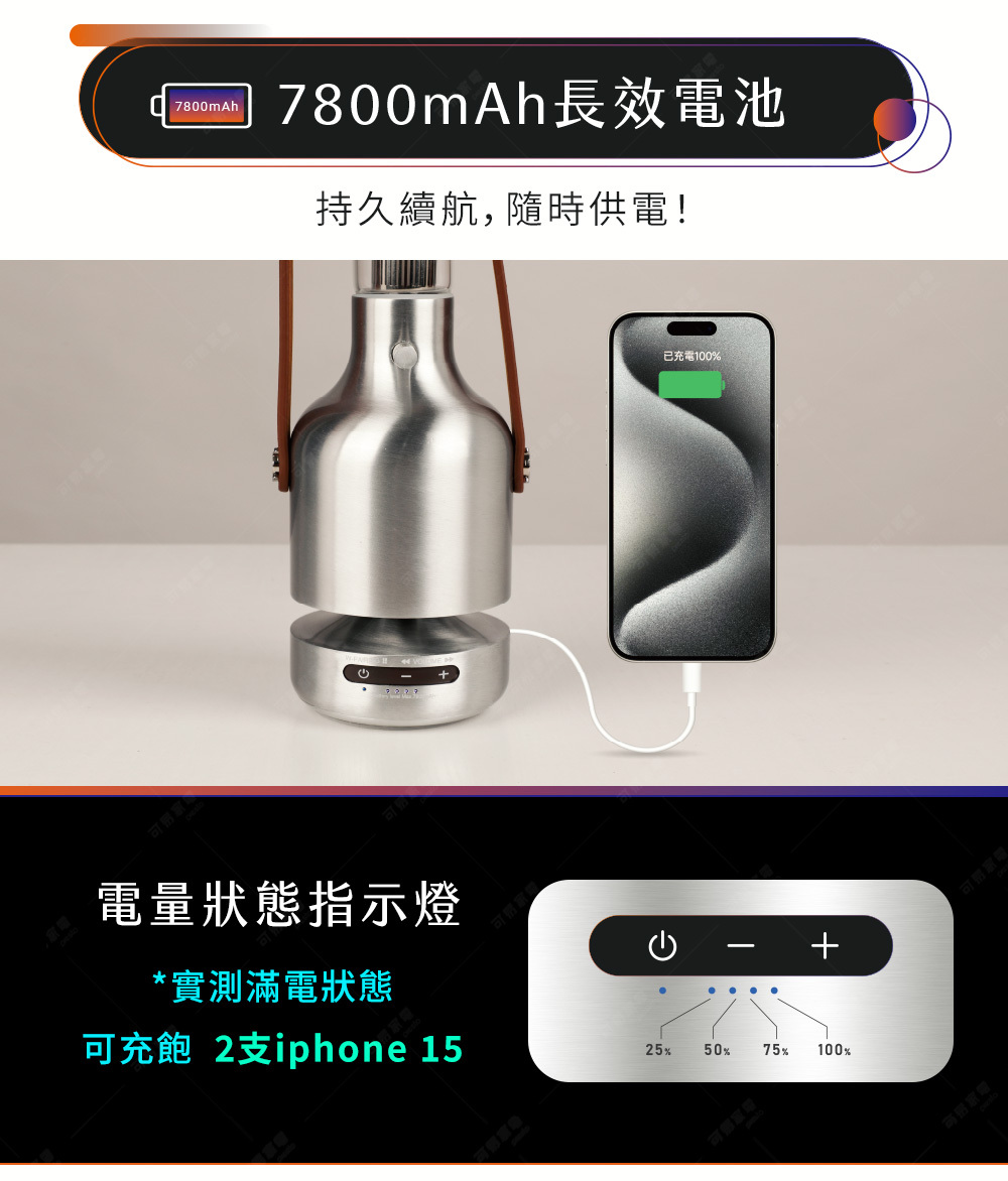 滿電狀態下,可播放音樂超過10小時、點燈長達24小時、充滿兩台 iPhone。